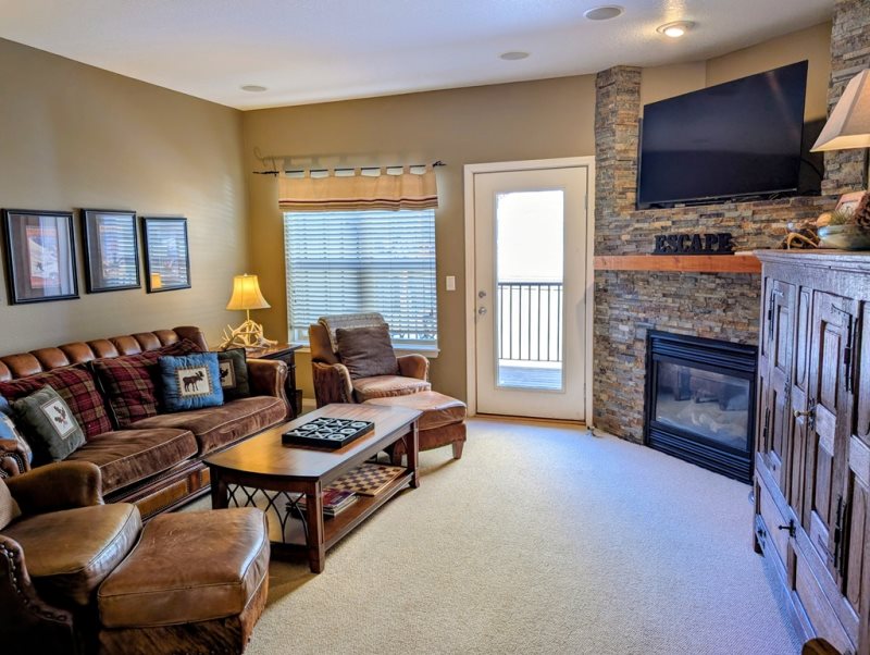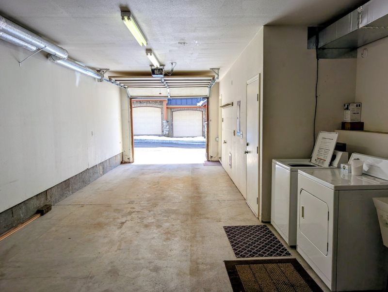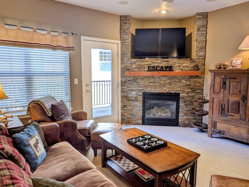 Step outside to a private back deck equipped with a table and 4 chairs. Guests staying at the Chalets at Collins Lake Resort enjoy access to exclusive community amenities, including a year-round heated swimming pool, outdoor hot tub, and sauna. The first level of the home is a tandem two-car private garage, where you will find the washer and dryer for your laundry.