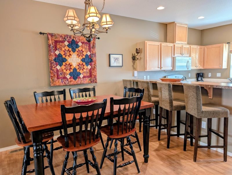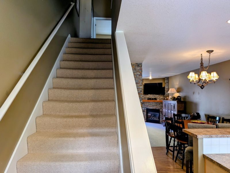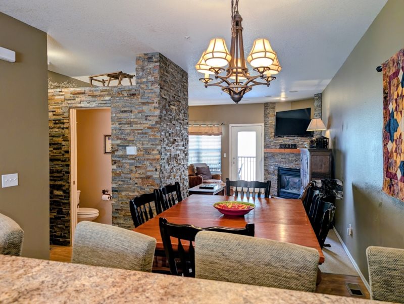 Gather in the cozy living area, where a warm gas fireplace and large TV create the perfect setting to unwind after a day on the mountain. The fully equipped kitchen is stocked with all the essentials, allowing you to prepare everything from a quick breakfast before first chair to a leisurely dinner shared around the table. With a large 6-person dining table and 4 stools at the breakfast bar, there's plenty of space for everyone to gather.