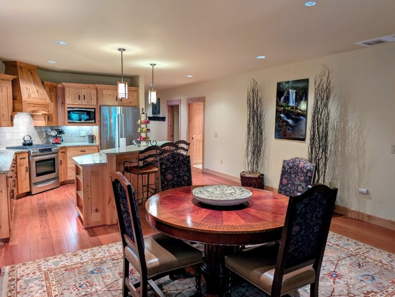 Gather in the inviting open-concept living area, where a warm gas fireplace and large TV create the perfect setting to unwind after a day on the mountain. The chef-inspired kitchen is stocked with all the essentials, allowing you to prepare everything from a quick breakfast before first chair to a leisurely dinner shared around the table.